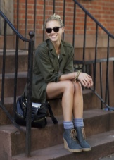 In military style, appropriate shoes should be present. You can choose models with fashionable tractor soles, with tight lacing.