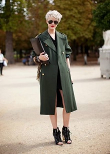 - The ladies simply have a magical look in light coats of swamp and green colors, complemented by dark fittings and a bright belt. These unobtrusive elements look especially impressive on outerwear of a fitted cut with an English collar or smell.