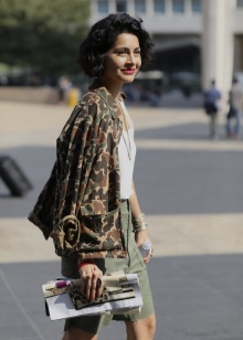 Ensembles in which military is combined with sports style look insanely fashionable and modern. This can be light T-shirts, sneakers (sneakers) with camouflage print and sports shorts.