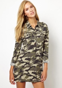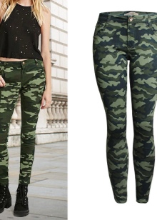 Clothes in a military performance are produced by the insanely popular brand Oodji. He provides a choice of fashionistas with concise swamp-colored trousers, as well as shirts and tops in the corresponding colors (green, marsh, beige).