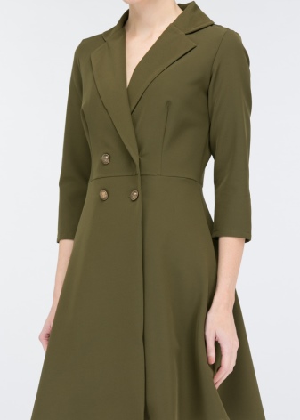 Bold fashionistas may well dress up in an evening khaki dress that will emphasize their bright personality and self-confidence. The military style itself is designed for confident ladies with a solid character.