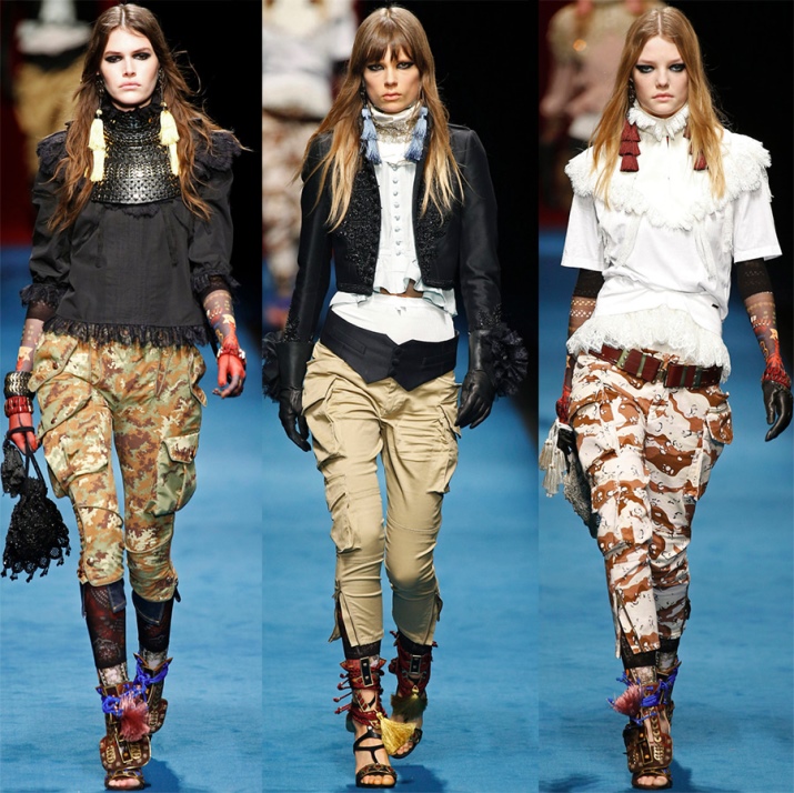 A bit later, softening details found their place in this style. This fact made the military popular among the fair sex. Many well-known fashion designers and designers presented such clothes on world catwalks.