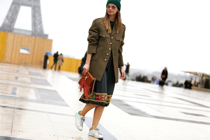 The military is universal. It can stop both girls and older women. You can create a beautiful and harmonious image in absolutely any way.