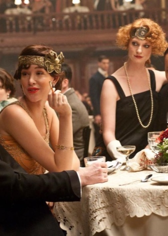 The cut of evening dresses was sure to expand slightly downwards, so that the girl who lived in the era of the revival of jazz, shimmy and foxtrot was comfortable moving on the dance floor. Dancing at that time really became a real passion for many women. That is why various elements of decor, for example, “pendants”, which actively shook the girl during the dance and gave her a certain charm, came into fashion.