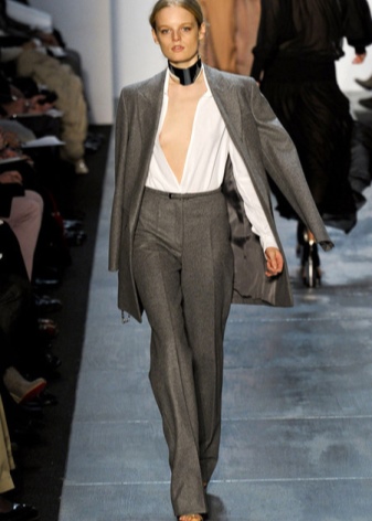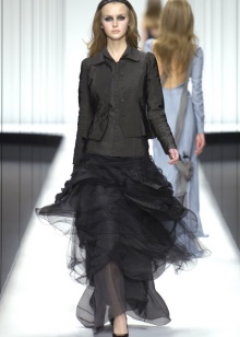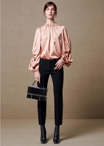 In the Art Nouveau style, there is a place for classic costumes. A fitted jacket will look great with high trousers.A lace silk blouse can be worn under a jacket. The same blouse is also suitable for a flared skirt.