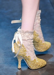 Art Nouveau shoes are as unusual as clothes. For example, Versace offers stocking boots and shoes with an elongated rounded toe. Louis Vuitton creates a collection of velvet boots. And Valentino - lace boots that look great on thin legs.
