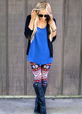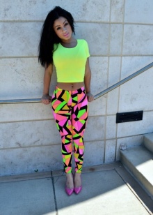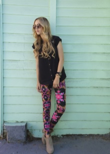 Another characteristic detail of the youth style are multi-colored leggings. But here it is worth considering the structure of the figure. If you are the owner of magnificent forms, then you should not resort to such options.