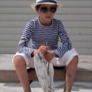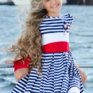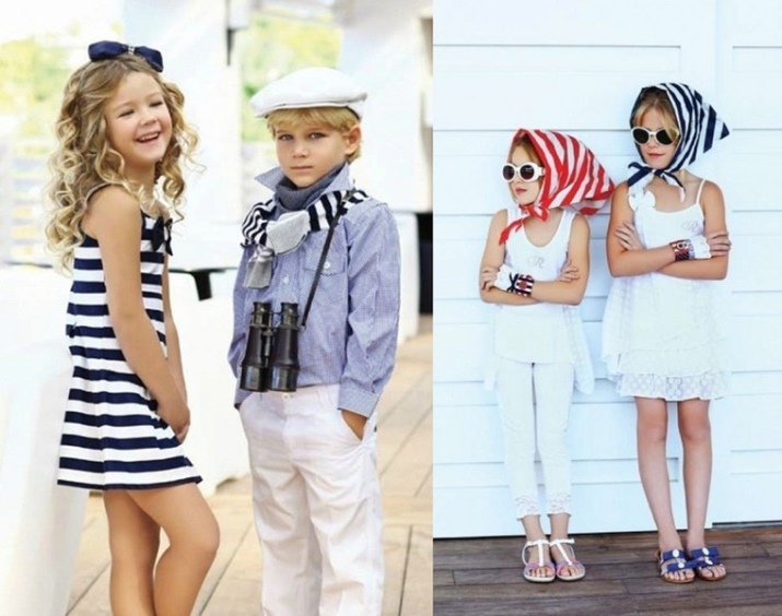 Children's clothing in a marine style is practically no different from an adult. Designers usually create similar models for mothers and daughters, for dads and sons.