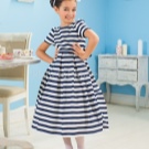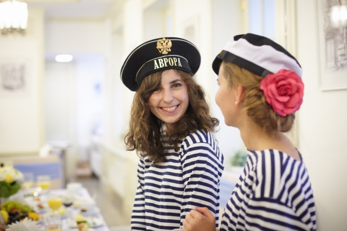 - MaterialsAlthough initially marine clothing was only for men and was made from natural cotton fabrics, today designers use light, airy materials for sewing things for children and women. They prefer silk, pearls and lace.