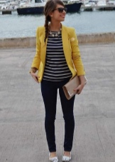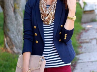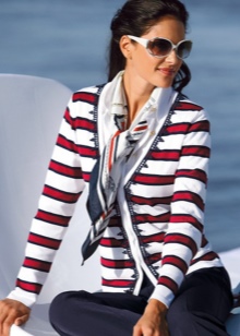 If you choose a jacket, then you should not pick up a striped option. A monophonic model is also perfect. It is worth paying attention to color schemes. The marine style is characterized by blue and white. The presence of prints is not welcome, although not prohibited.