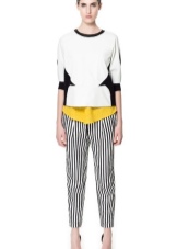 Pants can be decorated with stripes, but with this print it is worth being very neat. As you know, horizontal stripes are always full. Wide belts decorated with large metal buckles will help to add unusualness and elegance to the image. Such models are often decorated with chains or anchors.
