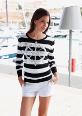 This element of women's wardrobe is a striking example of marine style. The vest can be worn in an ensemble with tight-fitting jeans and black or dark blue trousers of a classic style. She perfectly combines both with shorts and a skirt.