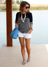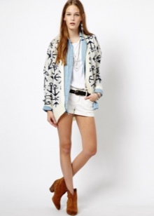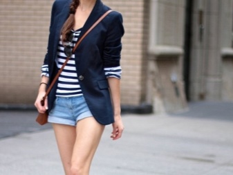Shorts look beautiful in tandem with jackets and blouses. They can be combined with tops that resemble a sailor suit or vest in style. When choosing a color scheme and decorative elements of shorts, you should adhere to the same recommendations as with trousers.