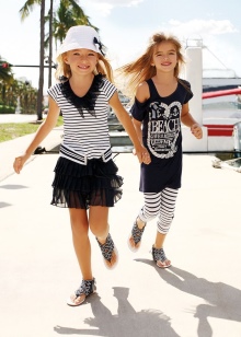 The girls' collection includes attractive striped tops that have much in common with the famous vest. Hats in the form of sailor berets or caps attract attention. Beautiful models of sweaters allow you to create an irresistible look in a marine style.