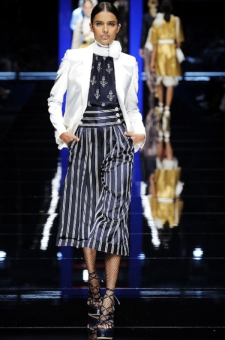 In the marine style, black, white and blue colors are often used. Women's clothing can combine both two and three shades. Designers often use red when modeling clothing in a marine style. It is not a dominant, but only complements the drawing.