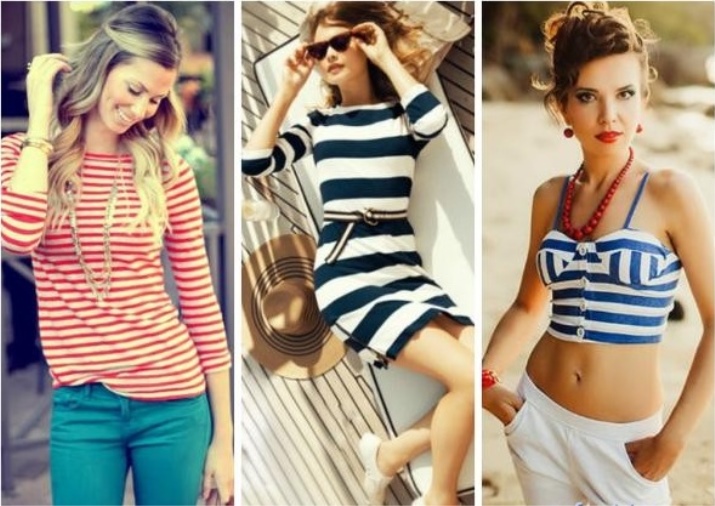 This drawing first appeared on sailors' vests. Today, clothes for women can be stripes of different widths, starting from narrow, almost invisible, and ending with wide. The lines can go both horizontally and at any slope.