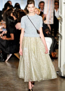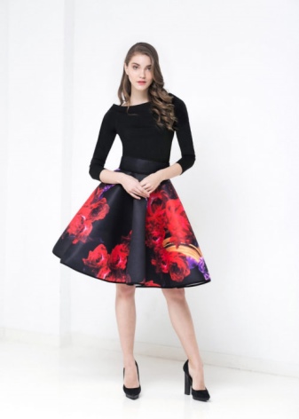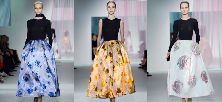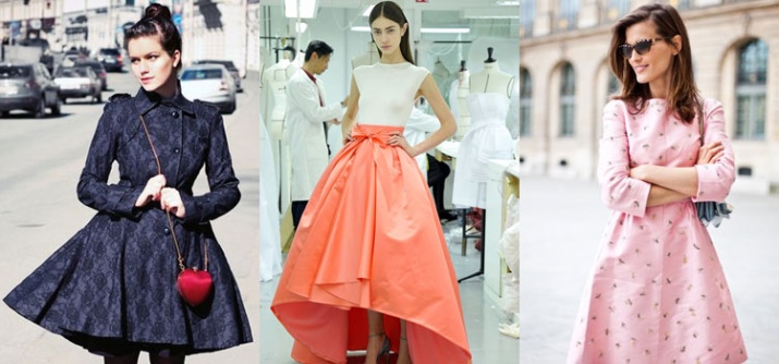 - A fluffy flared skirt of various cuts (with folds, assemblies, flounces, layered), accenting femininity.