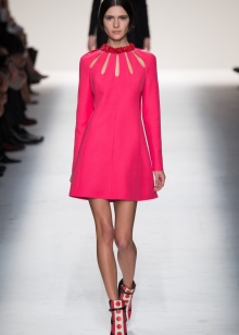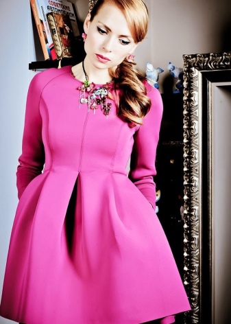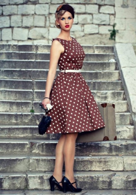 A luxurious dress in fuchsia color is ideal for a special celebration or social event. A model of such a plan with a skirt from the hip is one of the most relevant this season, and it is better to complement it with black sandals on a thin stiletto heel. A dress with a print in the form of large peas can be emphasized with elegant jewelry, a stylish clutch and sunglasses.