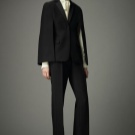 - a jacket of a man's cut minimally emphasizing the contours of a female figure (with the absence of trim, draperies);