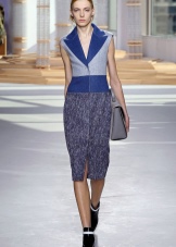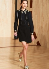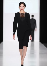 - You can not do without a fashionable dress: in addition to the classic style and laconic forms, the accent of the fashionable image is a sheath dress, straight, with a collar, shortened sleeves.