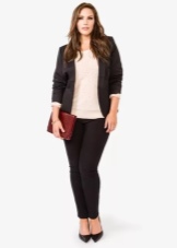 For owners of magnificent forms, the style will help to look elegant and representative. With the right selection of costume parts, you can beat imperfections, visually “stretch” the figure, giving it harmony. Shortened jackets and mini skirts are contraindicated for such women, it is possible to balance the figure with the help of an elongated jacket in a diagonal or horizontal strip.
