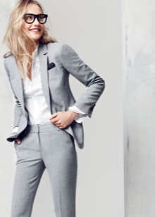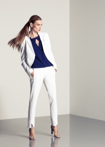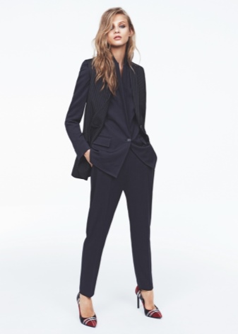 - Pants set formal business style can be of different styles. This is a straight jacket, fitted jacket, trousers with arrows.