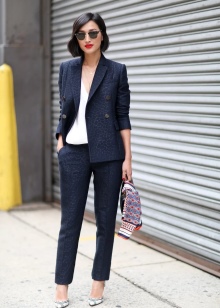 - Stylish double-breasted jackets and cropped trousers in a men's style will help to create a business look.