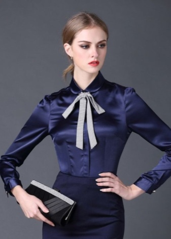 Formal business attire adheres mainly to classic shades. The main part of such a wardrobe consists of white, black, brown, all shades of gray, beige and blue. Prints of style are a cage, strip, polka dots. Aggressively brilliant texture of the material (rhinestones, sequins, sparkles) is excluded. Blouses can be made of iridescent satin or silk.