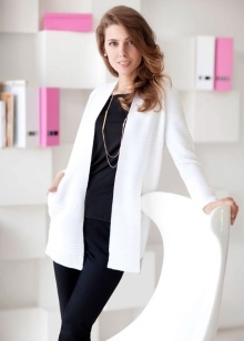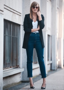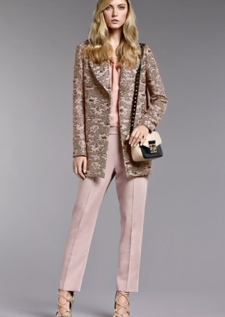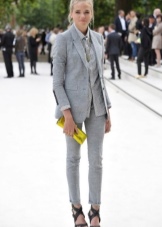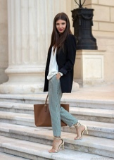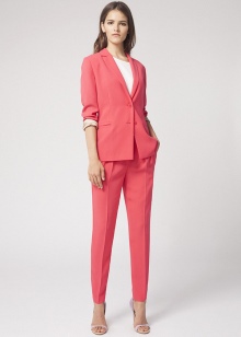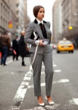 For lovers of clear lines and severity, stylists recommend purchasing a trouser suit in a men's style: a long jacket and skinny trousers. In this case, the material of the top and bottom can be contrasting.