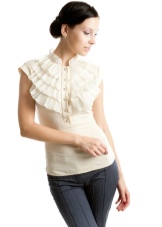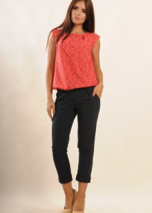 - Blouse. It can be laconic cut or with a bright accent (shuttlecock, frill);