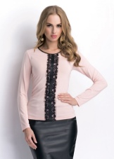 A romantic, feminine look will help to create a gray-pink blouse with sleeves of a contrasting shade. The highlight of the outfit is a bow made of finishing material. Such a product can be combined with a straight-cut skirt and a concise top.