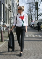 Fashionable trousers are products with a high waistline. A flare comes back, and it is better to choose chiffon blouses with a discreet ornament to narrowed pants. Printed trousers are trending. Today, stylists recommend combining them with plain clothing with a strict cut.