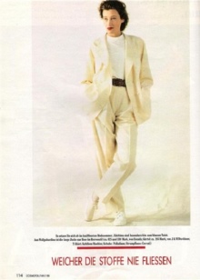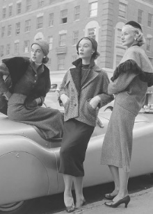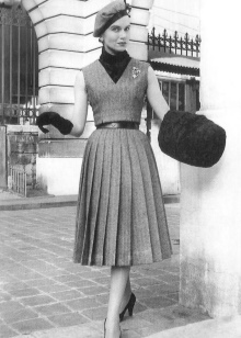 Since the 50s of the last century, soft fitted jackets, feminine costumes in the Chanel style, silk blouses and boats appear.