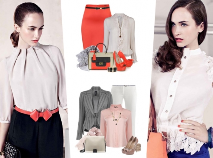 Blouses made of thin materials are in fashion. You need to wear them with fitted jackets or straight jackets.