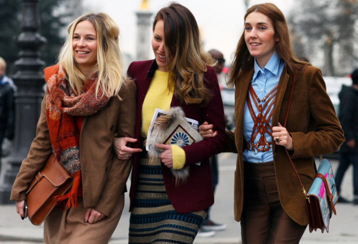 Tweed and wool products are in fashion. Clothing can be made of knitted fabric or made to order. Suede and cotton products are in fashion. Often, costume items are made from soft varieties of genuine leather, satin and silk. The favorite of the season is textiles with a brilliant texture.