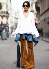 Anyone who wants to oversize is tall, slim and long-legged. But here it is not complete without nuances. Firstly, it’s worth looking at shirts, sweaters or skirts that slightly open your back, ankles or shoulder - the outfit comes out sexy and playful. And secondly, even if you are a fan of exceptionally bright colors, special attention when choosing to focus on textures - they play a key role.