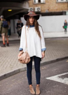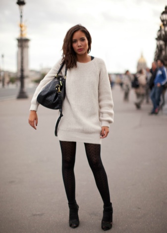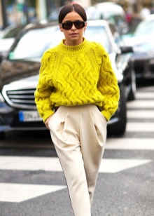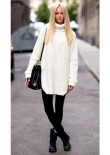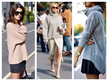 Experienced shopaholics say: if the store did not find a sweater in the right style, then you should look into the men's section. Sweater - perhaps the most democratic type of clothing oversize. To create a feminine and delicate look, models with deliberately wide sleeves are suitable, for the bold and the bold - with a collar-collar, and knitted pullovers barely above the knee length have successfully replaced many casual dresses.