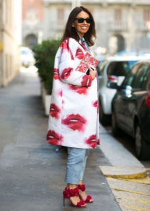 If we talk about outerwear, then more often fashion designers offer plain coats and sheepskin coats. For ladies of elegant age - pastel colors, for bold youth - bright. The most popular wardrobe item in the 2015-2016 season for urban women of fashion was a deep burgundy sheepskin coat with a sheepskin collar. However, for fearless people have long come up with coats with prints - for example, in the form of scarlet painted lips.
