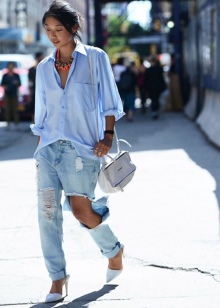 Legendary boyfriend jeans settled in the wardrobe of almost all celebrities. Torn or moderately worn, with pins and whitened, often hanging on the hips, these jeans create an amazing effect - they attract attention, but do not give out how long their wearer has been collecting the onions. But with oversize trousers the situation is somewhat more complicated: combining a wide bottom with a narrow top is very difficult, and only thin and very high ones can afford such a thing.