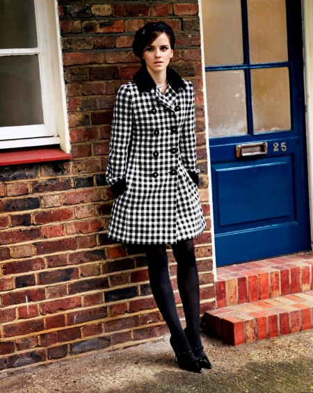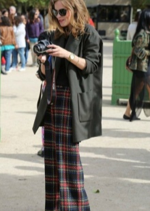 Emma Watson has long been a student of the famous saga, but an icon of style and a fan of free silhouettes. You need to pay attention to how ordinary shoes, trousers and sweaters are. But the voluminous black and white coat and French beret turn an ordinary outfit into an interesting image.