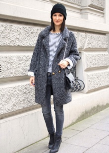 In the case of this type of outerwear, designers pay tribute to minimalism. The cut is most often straight, the complete absence of decor and gates with an extremely simple finish. Slender and long-legged girls liked voluminous short models of different colors. The mention of physique is not accidental: if a woman is notable for her short stature or curvaceous, then it is better to abandon this style. And shorten, and visually add a couple of kilos.