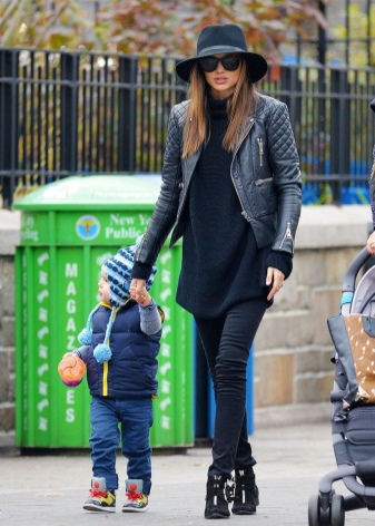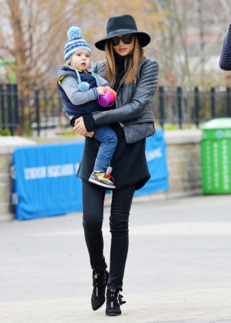 Hats often serve as a great addition to the style, and the image of Miranda Kerr is no exception. Skinny trousers, a well-known leather jacket, a stretched sweater and a wide-brimmed hat - voila! - and the attitude to the world of fashion is not only a gait.