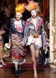 In a short period, Vivienne Westwood has become a center of attraction for punks. Here you can find jackets sewn from different pieces of fabric and chipped together with pins, trousers with stains after soaking in bleach ... Rivets, badges, ropes, spikes were used as jewelry. And, of course, representatives of the punk environment could immediately be recognized by their hairstyle - Iroquois.