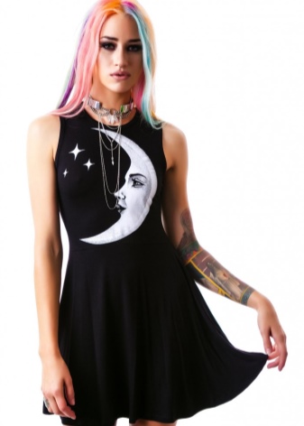 To match the punk style, just get a little black dress. But the important point in this outfit will be accessories. It can be chains, pendants, metal earrings, bracelets with spikes.