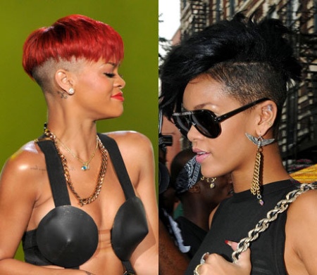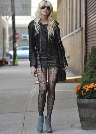Popular singer Rihanna is a bright representative of fashion punk. Black short jumpsuit in all its glory demonstrated her gorgeous figure. The image was completed by tights in the net. The hairstyle corresponded to the chosen style - a shaved nape and whiskey.