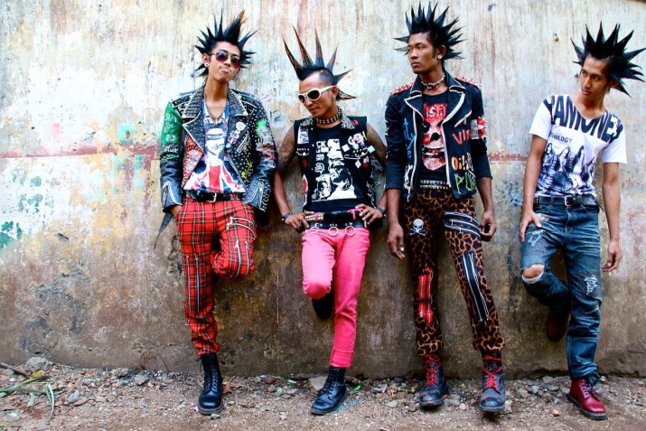 Modern punks wear a jacket-jacket made of leather pieces, richly decorated with all kinds of metal accessories. Jeans are usually torn and worn to holes. On the pants there may be some kind of patterns that cause inscriptions, patches. Shoes are usually massive, such as army boots or ordinary sneakers.