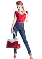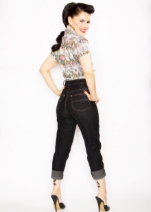 In a pin-up look, trousers also harmoniously look. But not all models are suitable for this style.