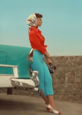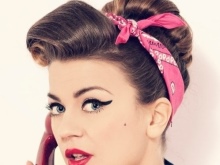 In a pin-up look, ordinary scarves from thin and flowing fabrics simply magically look. They can be tied on the head in the same way as regular bandanas. But in fact, there are several options for wearing this product.