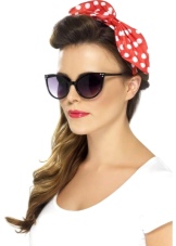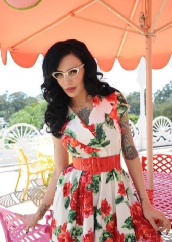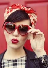 Sunglasses are another popular and functional addition to a pin-up look. Not so long ago, such a detail was rarely used in this fashionable direction. Most often, these were models with large glasses and multi-colored frames.