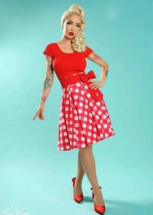 Pin-up eliminates the wearing of loose fit clothing. You should not pick up things like baggy jeans, sweatshirts, and any other oversized outfits. Only a fluffy skirt with many pleats does not obey this rule. Such a little thing is able to add subtle notes of extravagance to the stylish image.